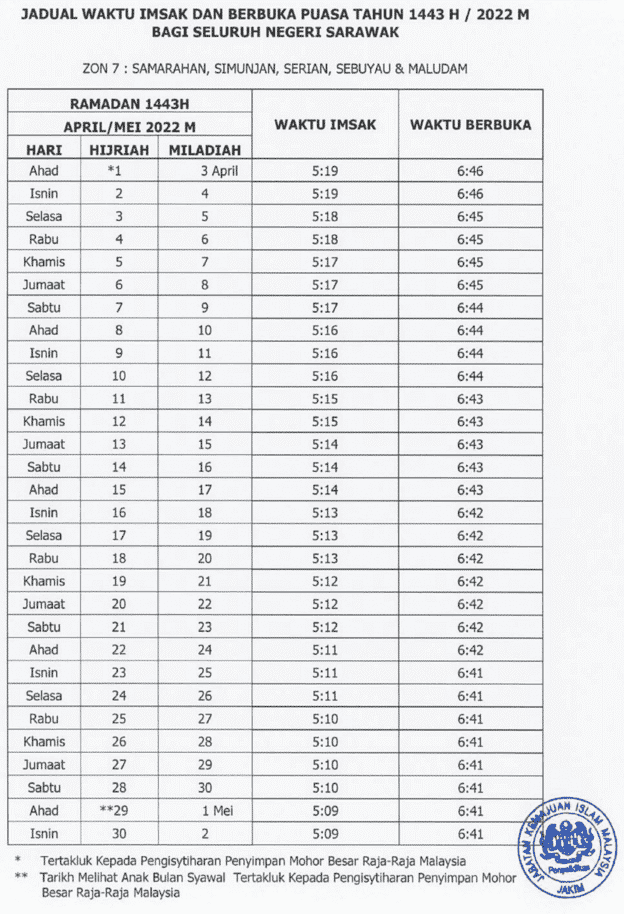 Jadual Sarawak 2022 Waktu Berbuka Puasa Dan Imsak 1443